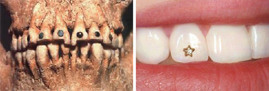 О том, что у каждой народности было свое понимание красоты, могут доказать следующие факты. Красивая улыбка в понимании народа майя — это заостренные зубы, украшенные драгоценными камнями. Женщины с острова Бали по достижении зрелости стирали с помощью специальных инструментов эмаль. А мужчины из африканского племени вавира стачивали зубы до половины их длины.