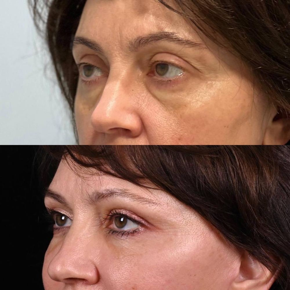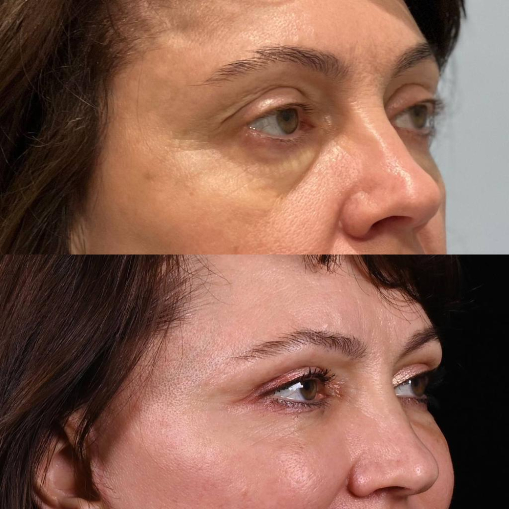 Я сделала одновременно верхние и нижние веки, потому что проблема была и там, и там. Под глазами мешки + впадинка… то есть носослезная борозда. А на верхних веках свисающая кожа и грыжи. Если сделать только нижние, то омолаживающего эффекта можно и не достичь, потому что оценивается лицо в комплексе. Поэтому я решила, раз уж делать, то делать сразу круговую блефаропластику. Пошла на операцию к Тиграну Алексаняну, потому что он не только опытный пластический хирург, но и художник, что как раз-таки для пластического хирурга крайне важно) Так как веки – это самая деликатная зона на лице, то к ним нужен особый подход. Я предположила, что лучше, чем художник по призванию и пластический хирург по профессии, с этим никто не справится. И я не ошиблась, потому что безумно довольна результатами пластики век у Тиграна Алексаняна!