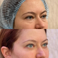 Благодаря лифтингу лба удалось сделать выше расположение бровей… как в молодости когда-то, а также «открыть» верхние веки, слегка их тоже подкорректировав. Общий эффект – потрясающий! Я очень довольна!