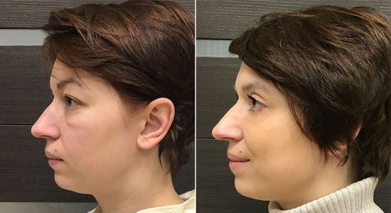 Для избавления от «отекшего» вида, я при помощи канюлирования и микролипомоделирования устранила избытки малярного жира и частично перераспределила по контуру в область носослезной борозды. Манипуляцию провела через микропроколы по бесшовной методике.