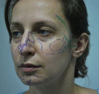 Давид Рубенович сделал фото непосредственно перед операцией. Затем специальным фломастером он обозначил зоны для липофилинга и ринопластики.