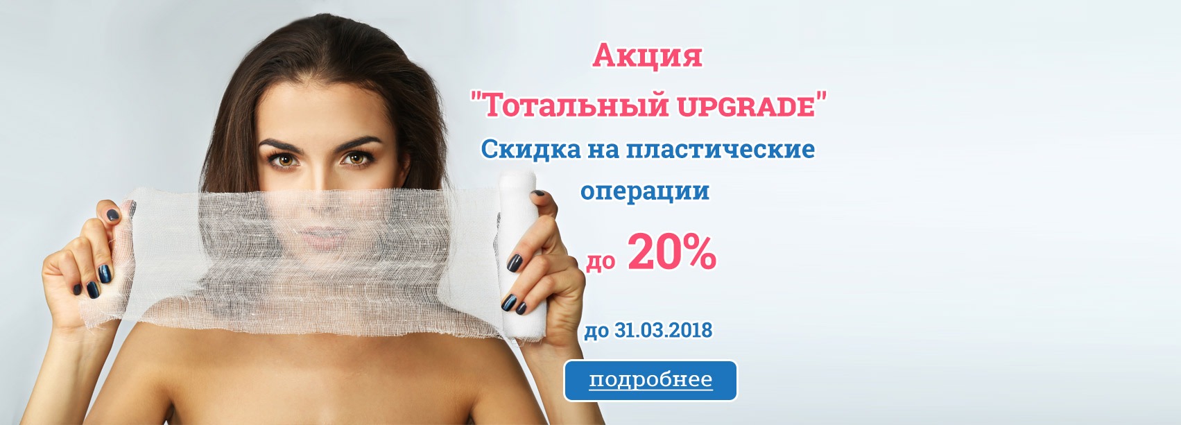 Стоит отметить, что послеоперационное пребывание в палате, компрессионное белье и анализы оплачиваются отдельно. Спецпредложение действует при условии проведения консультации и пластической операции до 31 марта 2018 года включительно.