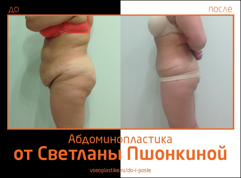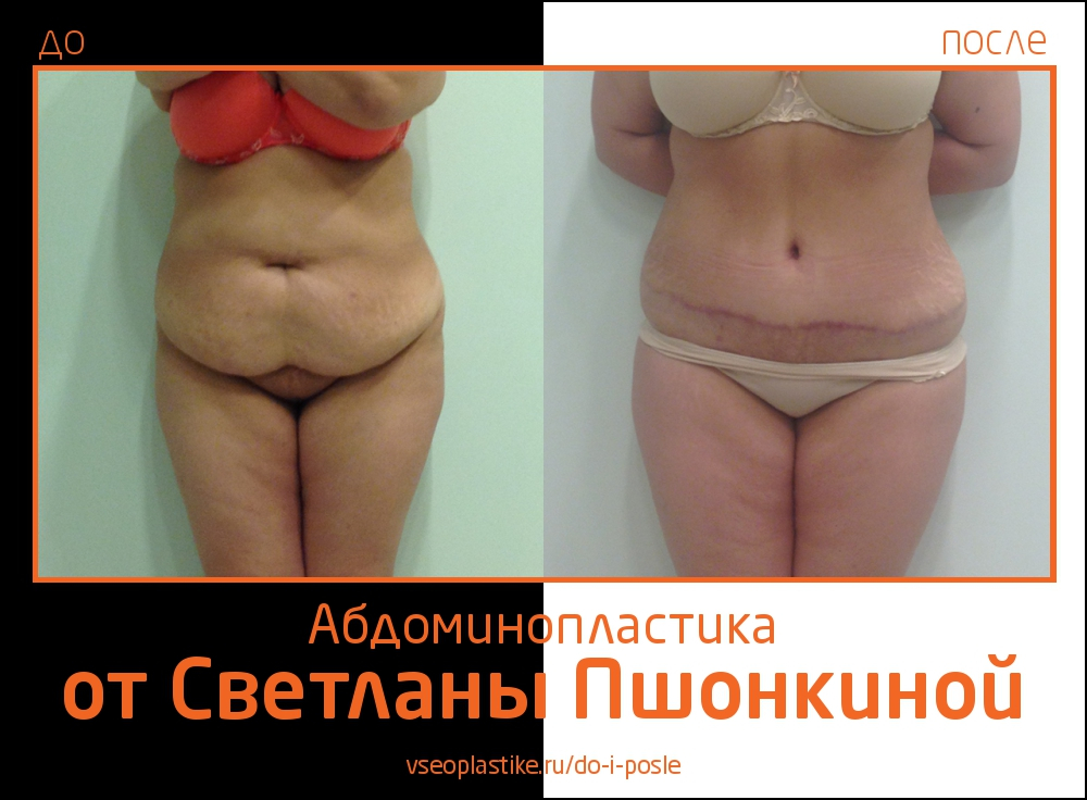При осуществлении абдоминопластики Светлана Пшонкина использует ряд наработок, которые позволяют укоротить длину шва и опустить его как можно ниже. Это гарантирует незаметность послеоперационного рубца под нижним бельем.