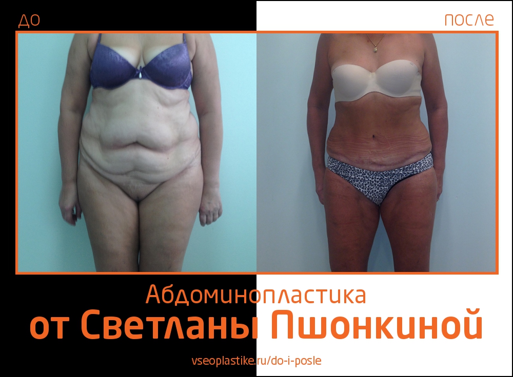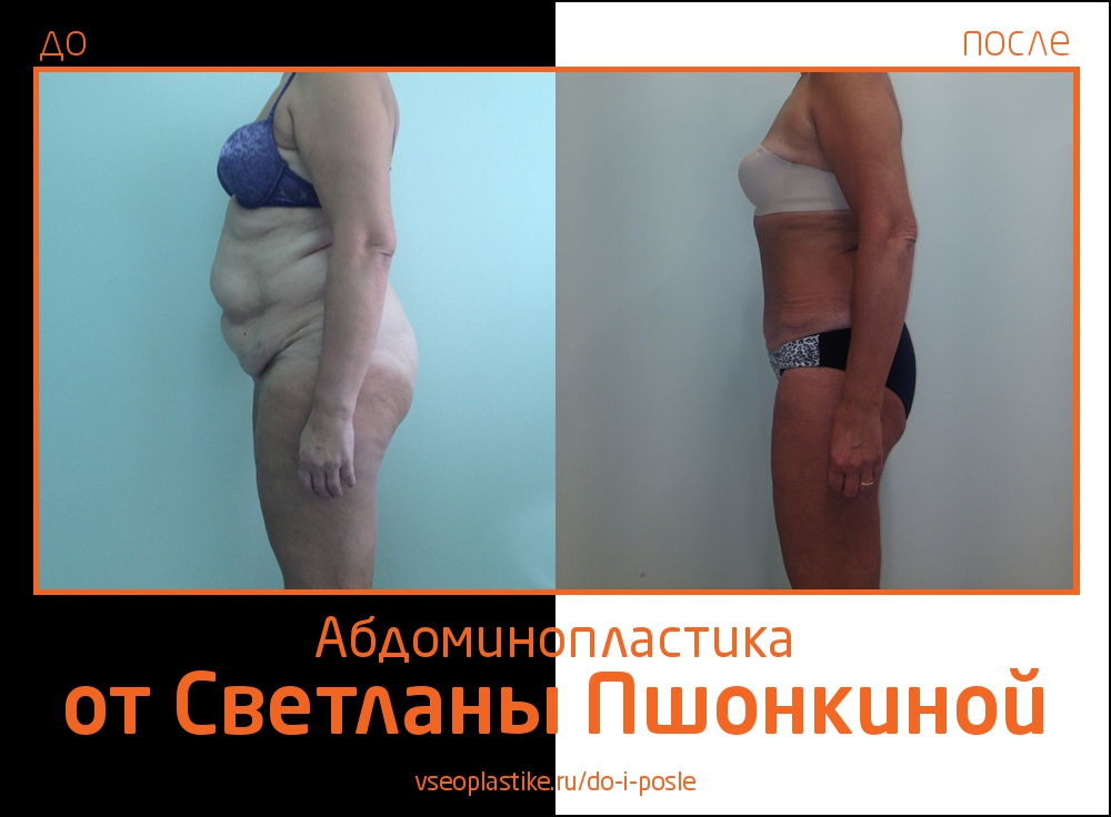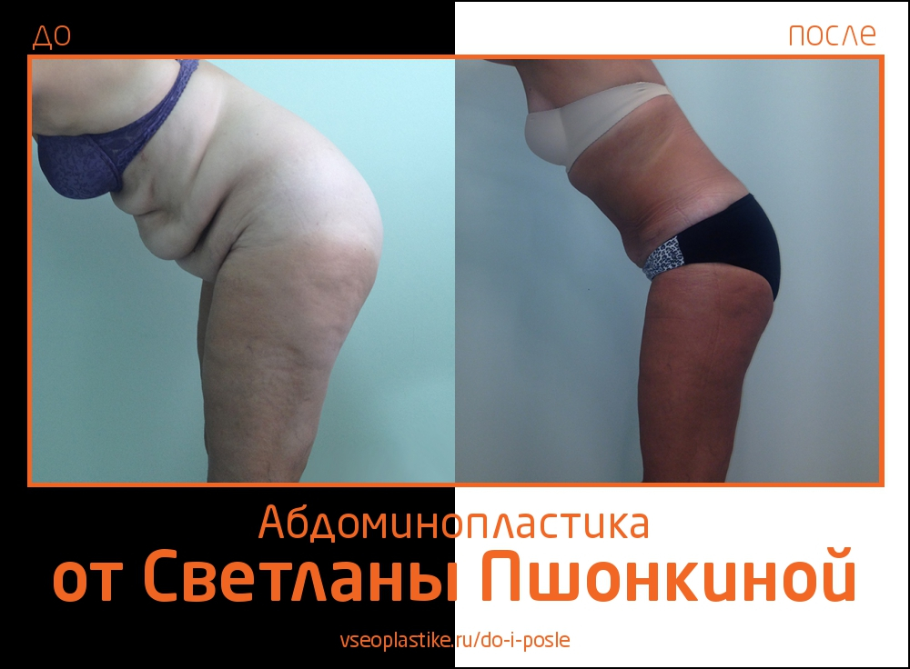 При осуществлении абдоминопластики Светлана Пшонкина использует ряд наработок, которые позволяют укоротить длину шва и опустить его как можно ниже. Это гарантирует незаметность послеоперационного рубца под нижним бельем.