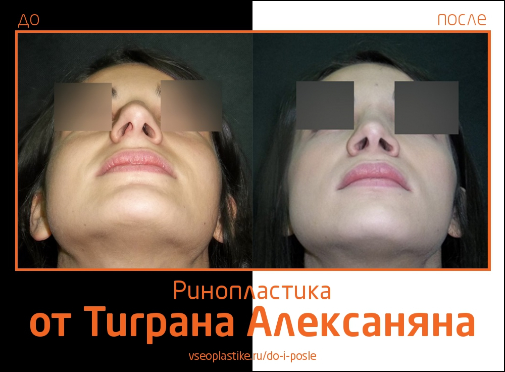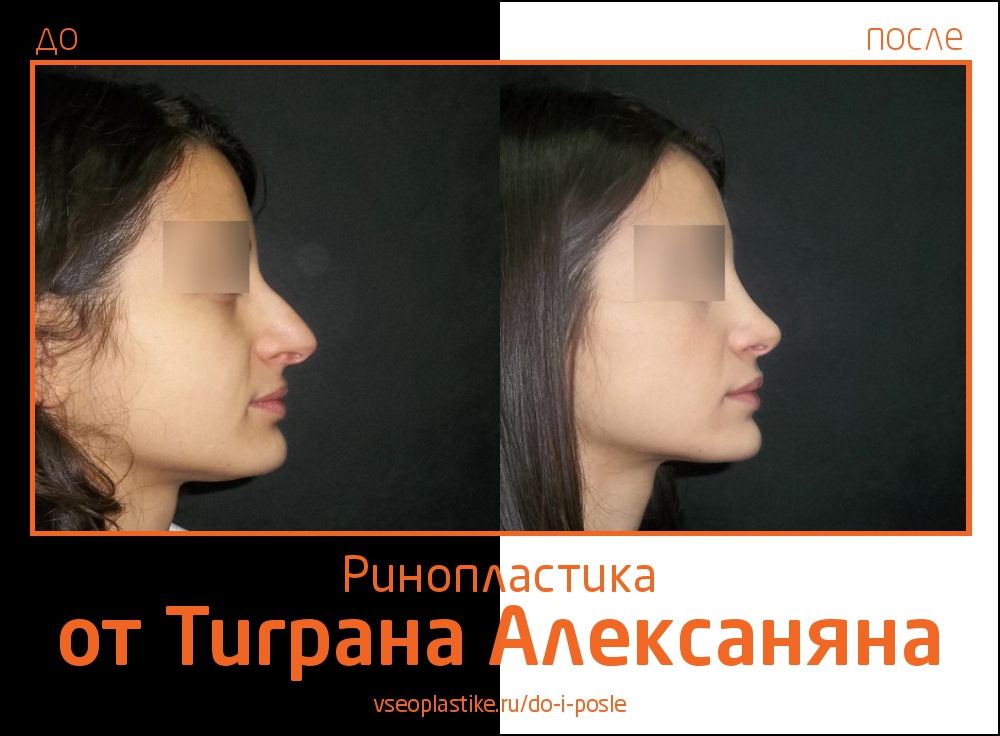 Пациентка Тиграна Алексаняна до и после ринопластики. Данные снимки дают возможность оценить динамику произошедших изменений.