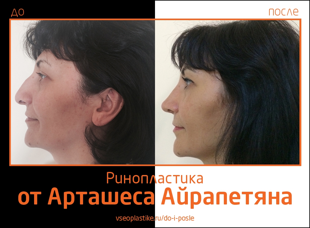 Пациентка Арташеса Айрапетяна до и после ринопластики. Оцените полученный эстетический результат с помощью этих фотографий.