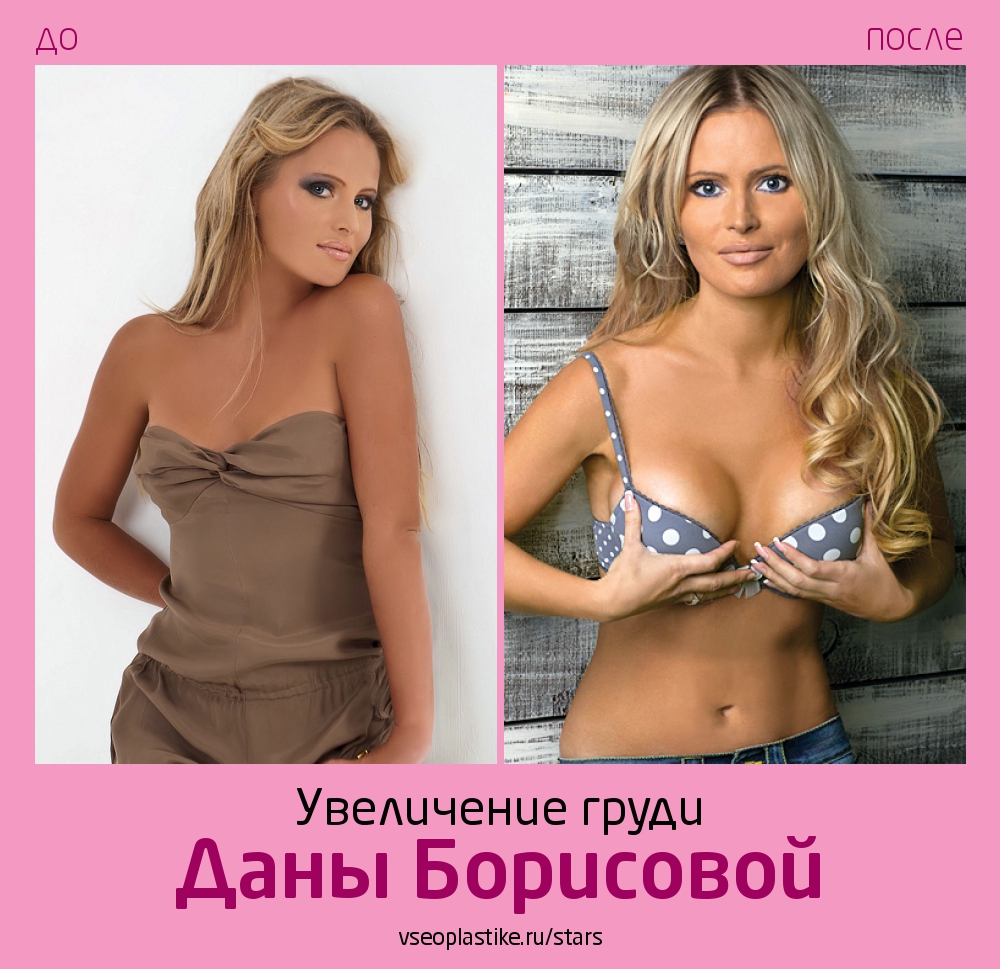 Знаменитая российская телеведущая в большом количестве пройденных пластических операций не замечена, однако и она не обошла своим вниманием эндопротезирование молочных желез. Сама девушка факт увеличение груди объяснила тем, что после родов ее бюст утратил былую форму, превратился в «две высохшие тряпочки». Операцию звезде выполнил Гайк Бабаян; Дане были установлены импланты с полиуретановым покрытием, которые являются безопасными для здоровья женщины и не препятствуют вероятной беременности и рождению ребенка.